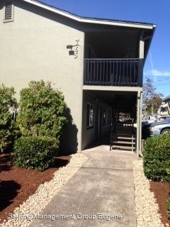 (DUP)  Studio Apartment - Close to Campus - Nice studio apartment, very close to campus and on bus lines.Wood plank flooring in living area and vinyl in the kitchen/bath. Nice upgrades to the property including brand new windows. Onsite laundry and off-street parking. Rent includes water, sewer, and garbage. Tenant is responsible to electricity thru EWEB. 12 month lease required, no pets.