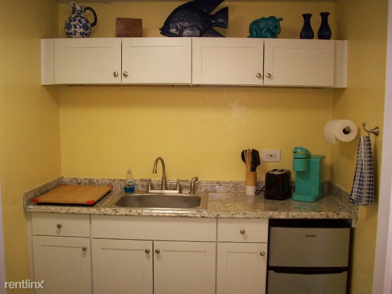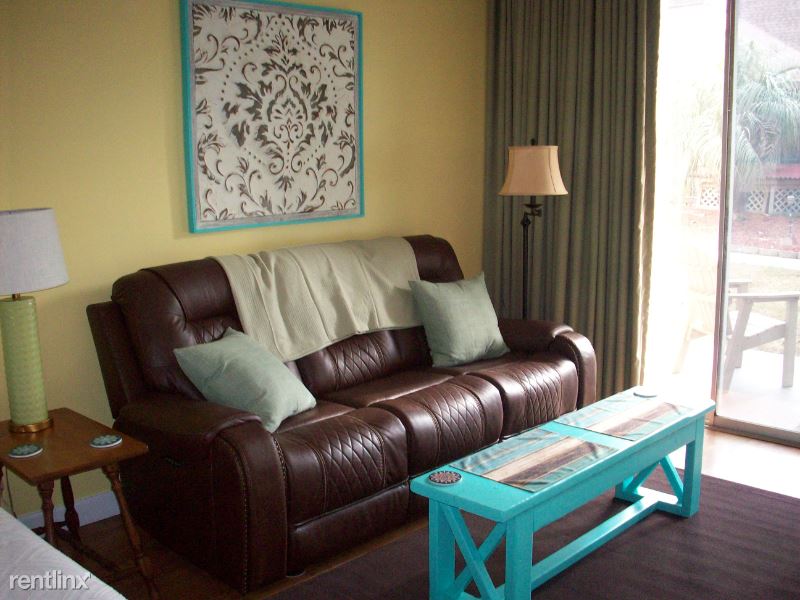 First floor studio unit just across the street from the beach! Furnished with all utilities included! Cable tv and internet provided. Full bath, kitchen equipped with small fridge, regular size sink, two-burner stovetop, microwave and Keurig. Cute dinette area with table and two chairs. Sofa with electric reclining seats, private patio with two chairs and table. Must see photos! Five-star rating! Everything you need in an efficiency condo. Minutes to major hospital, restaurants, shopping.